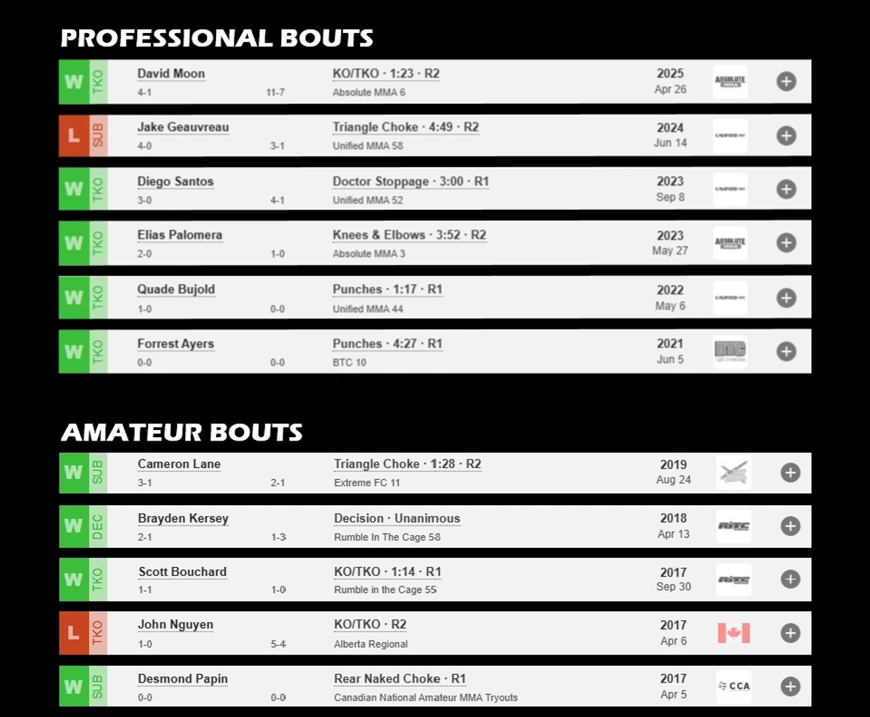 SEE NICK'S TAPOLOGY PAGE FOR FIGHT DETAILS & UPCOMING BOUTS